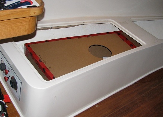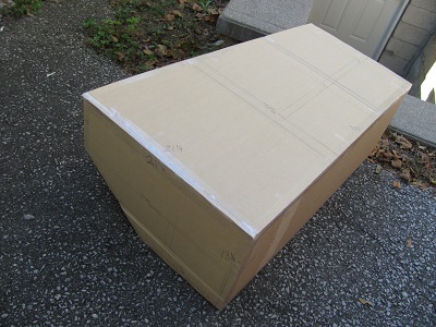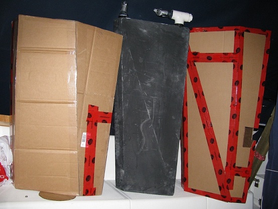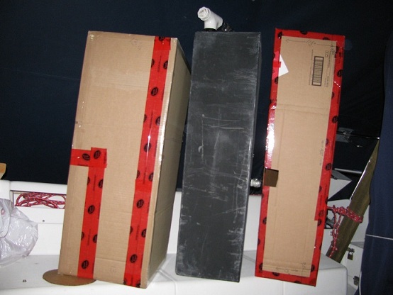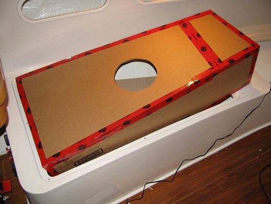 After looking through their catalogue of tanks I decided that the B179 was a pretty good fit, but the dimensions in the boat against the hull are so fluid, that it was hard to tell if it would fit. The fit seemed close. I took down the dimensions of the B179 and proceeded to build a life size model of the tank out of cardboard over a couple of evenings. Then on the weekend, took it to the boat and crossed my fingers. The fit was close, but in the wrong direction. It was too big!! Had the settee locker been either wider or deeper it might have fit. I was around this time that I also noticed a slight difference in the Catalina 34 layout. Earlier vessels had a port settee that had a straight edge along the aisle. On our 2002 Mk II version, the port settee was curved in towards port by about an inch and a bit. Our aisle is slightly curved. As a result the locker was narrower.